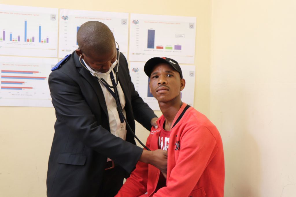 A nurse examining a patient A nurse examining his client at QII site Men’s clinics bring health services closer to men in Lesotho › A nurse examining his client at QII site