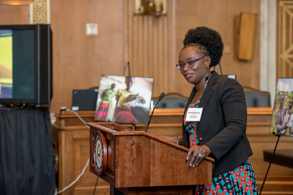 Maurine Murenga speaking at the 30th Anniversary event on Capitol Hill. Photo by Eric Bond/EGPAF. About › EGPAF Ambassadors › Maurine Murenga