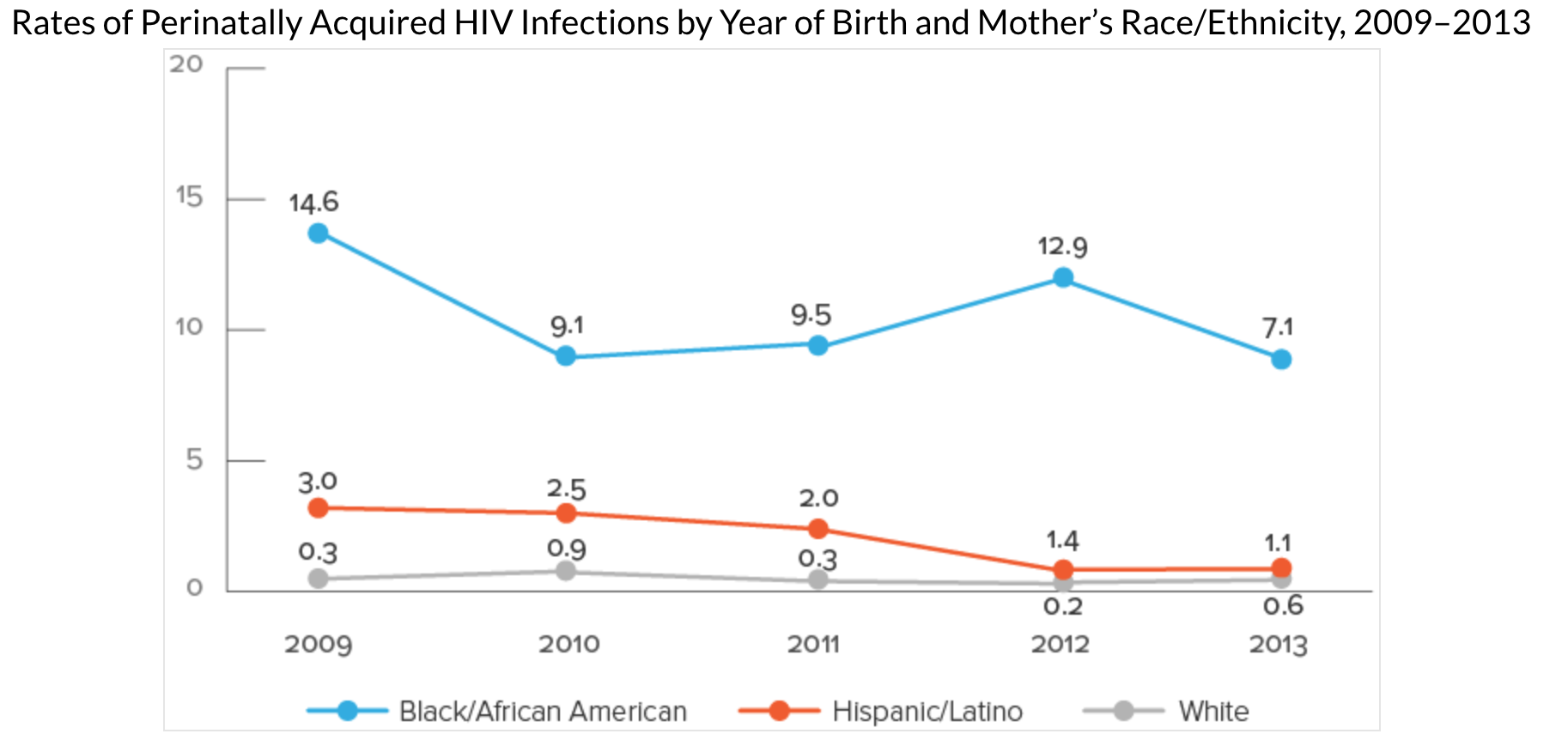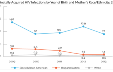 Graph showing that mother-to-child HIV transmissions have declined dramatically in the United States