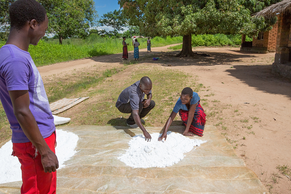 Seleman Chiopera, center, encourages the men in his Malawi community to become better partners with their wives and to be engaged in reaching their common goal of HIV-free children. Seleman-Chiopera-Malawi-med A Male Champion Dedicates His Work to His Sister › Seleman-Chiopera-Malawi-med Robin Wyatt for EGPAF, 2014