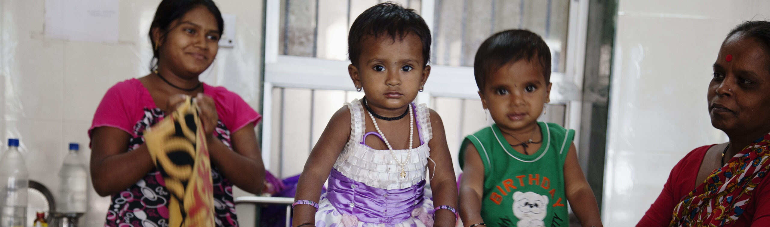 Pune, India, 29 Nov. 2012: Families visit and help their wives and mothers in the neo-natal ward at the Seth Tarachand Ramnath Charitable Ayurvedic Hospital, which serves poor pregnant women. SAATHII partner PRAYAS is instrumental in providing aid to people with HIV. Photo: Ann Summa).
